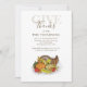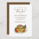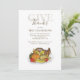 Esta design apresenta um convite jante de Ação de Graças, com outono, abóboras aquáticas, cornucópia horn de abundância, com vegetais, na moda elegante, excelente para a Ação de Amizade, com fazenda rústica, laranja botânica e verde-sábio