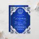 Convite de batismo azul real com bela coroa de diamante e elegante escrita em um rico fundo azul real e branco redemoinho. Este convite de batismo de coroa azul príncipe é facilmente personalizado para o seu evento, simplesmente adicionando seus detalhes no estilo de letra e cor, e texto de sua escolha.