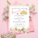 "Nossa doce princesa está girando um" design de "Festa de aniversário" com gradiente sem edição de texto de roteiro para "Princesa" com uma coroa de tiara brilhante falsa, borboletas de gradiente rosa e borboletas cor-de-rosa com brilho fino cor-de-rosa acentuado rosa nas bordas florais. Basta adicionar detalhes da parte para completar o design.