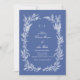 Defina o tom da sua celebração romântica com este deslumbrante convite de casamento azul cornflower, apresentando delicadas flores silvestres brancas desenhadas à mão e folhagens botânicas dispostas em uma moldura de guirlanda orgânica e exuberante. Coordene com cartões de RSVP, cartões de detalhes e notas de agradecimento correspondentes para criar um conjunto de papelaria de casamento coeso que deixa uma impressão duradoura nos seus convidados. Ideal para casais que buscam uma mistura de elegância rústica e romance vintage com um toque moderno e personalizável.