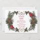 Encontre mais detalhes no verso do convite com um Cardinal em um galho