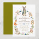 Encante seus convidados com este encantador convite de chá de bebê em aquarela, apresentando uma charmosa guirlanda circular de adoráveis animais da floresta! Um doce coelho cinza em um casaco aconchegante, um rato brincalhão com laço, um ursinho de pelúcia, uma raposa curiosa, um ouriço espinhoso com laço, um rato em uma cadeira de balanço com um vestido de touca, uma coruja sábia, borboletas voando e frutas frescas em folhas verdes criam um ambiente mágico e neutro em termos de gênero. Perfeito para celebrar a chegada de um pequeno em um estilo rústico e de conto de fadas. Totalmente personalizável - adicione seus detalhes facilmente!