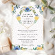 Este convite de casamento luminoso e romântico apresenta uma grinalda em forma de coração com flores de verão azuis e amarelas, acentuadas com folhagens suaves, criando um ponto focal quente e acolhedor em torno dos detalhes do evento. O estilo de aquarela adiciona suavidade e charme, enquanto a paleta sazonal fresca traz um sentimento alegre e edificante. Perfeito para casamentos de verão, cerimônias no jardim ou qualquer celebração que abrace flores vibrantes e elegância de coração.