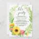 Este cartão de convite de coroa de girassóis de verão é perfeito para um evento de primavera ou verão. O design apresenta uma coroa de folhagem floral com girassóis amarelos brilhantes e flores de gerbera rosa. Este convite é perfeito para uma festa de noivado, despedida de solteira ou qualquer evento ou festa.
