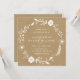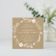 Este convite quadrado de casamento apresenta uma coroa floral botânica rústica branca em um fundo de papel kraft marrom falso.