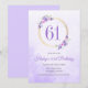 Convites Coroa Floral Roxa Pastel Dourada Aniversário de 61