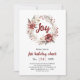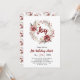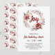 Coroa de flores vermelhas e bagas Convite de festa de Natal alegre. Este convite de festa de Natal é uma verdadeira encarnação do espírito natalino. O centro deste convite é uma impressionante coroa feita de galhos, adornada com flores vermelhas vibrantes, bagas e folhas. A coroa serve como uma bela moldura para a palavra "Alegria" que é exibida de forma proeminente dentro dela. Este convite certamente trará um sorriso ao rosto de qualquer pessoa que o receber, e estabelecerá o tom para uma celebração festiva e alegre. O verso inclui um padrão da mesma coroa com a palavra "Alegria"