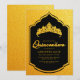 Convites Coroa luxuosa, preta e Quinceanera Dourada