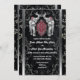 Um belo fundo prateado e negro damásico é enquadrado por bandas falsas prateadas e flores mais úmidas a preto. Uma crista com designs de hena de burgundy está bordada em cada lado por um elefante prateado da Índia. Os elefantes têm seus troncos levantados e segurando uma coroa em seus troncos sobre a crista. Modelos de texto branco para o seu texto personalizado aparecem abaixo dele. O dorso tem o mesmo design e um modelo adicional para mais informações aos convidados e familiares, que podem ser removidos se não for necessário. Os tons fortes e ousados dão a este design uma sensação luxuosa, elegante e real do mercado. Este convite é ideal para celebrar qualquer cerimônia hindu ou hindu ou qualquer celebração ou casamento étnico asiático.