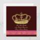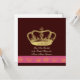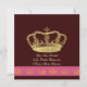 Um belo convite de casamento em formato quadrado. Ilustração fofa de uma coroa dourada com várias coroas menores na parte inferior em uma faixa de rosa brilhante. Adicione seu próprio texto em qualquer fonte ou cor para um drama extra. Brinque com cores de fundo também!