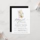 Convites de janto de ensaio elegantes, com uma ilustração em aquarela de rico, talheres de ouro. O texto "Janto de ensaio" é escrito em uma fonte bonito de script, com os detalhes do evento abaixo. O reverso é preto.
