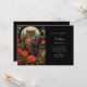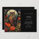 Convite de aniversário com uma legal coruja com um olhar piercing. Uma lua de cheio nas costas com flores vermelhas.