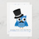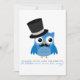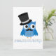 Coruja Azul com bigode e Chá de fraldas de Chapéu Superior Convidam Uma ilustração Adorável de uma coruja azul com bigode e chapéu de cima. É um convite perfeito para os chás "É um Rapaz!". Bonita, engraçada e única. Você pode alterar a cor do plano de fundo (atualmente é branca) clicando em personalizar e, em seguida, editar o plano de fundo.