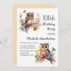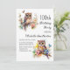 100º convite de aniversário com pinturas de uma coruja fofa sentada entre flores nos ramos de uma árvore. Entre em contato comigo para obter assistência com suas personalizações ou para solicitar outros produtos Zazzle correspondentes ou coordenadores para sua celebração.