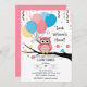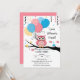 Convites Coruja rosa-branca com balões e Chá de fraldas Con