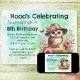 Convide os hóspedes com esta coruja vestindo um chapéu, sentados num tronco com flores rosa. Todas as informações da festa estão na frente. Personalize os campos de texto, remova texto ou edite usando a ferramenta design para selecionar um estilo de fonte, cor e tamanho desejados.