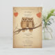 Corujas fofas apaixonadas. Personalize este convite de casamento adorável é perfeito para um casal que ama corujas. A frente do convite apresenta um par de corujas sentadas em um galho, com folhas em forma de corações.