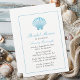 Ponha o tom para uma bela celebração costeira com este chá de panela de concha em turquesa azul macio. Perfeito para praia ou eventos náuticos, esta elegante design traz uma vibração romântica do oceano para a sua reunião à beira-mar no verão. Quer você esteja planejando um fim de semana de casamento de destino ou um chá de panela íntimo pela água, este convite captura o espírito do mar.