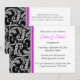 Os convites 5x7 lisos formais elegantes, elegantes e à moda com ornamentado IMPRIMIRAM os redemoinhos de prata do estilo no preto afiado com "o rosa quente" limitado por modelos customizáveis do texto. PERSONALIZE-O - personalize o fraseio e SUPRIMA ou adicione do fraseio adicional à parte traseira. Se você não exige detalhes ou sentidos do presente na parte traseira e você não suprime do modelo que do "o texto exemplo" se publicará no seu impresso convida. IDEAL PARA - casamentos, noivados, aniversários, bachelorette, eventos do chá de panela e da graduação, partidos e funções. PEDIDOS do COSTUME - para mudanças à idade, o auxílio ou este cartão em uma cor diferente contactam-me em clientrequestrw@gmail.com