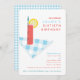 Dê o tom para sua celebração com este convite de festas de piquenique coquetel/limonada. Em tons de coral, azul e verde, este convite é perfeito para uma festa ao ar livre. A parte traseira apresenta um padrão de verificação de gingham em azul e branco. Todo texto é personalizável. Parte de uma coleção da Parcel Studios.
