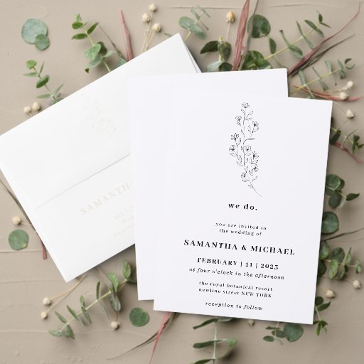 Convites Cotton Boho White Clear Botanical nós fazemos