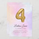 Mágico! O nosso adorável convite para o algodão doce a aquarela apresenta um balão de folha de ouro nº 4 pintado à mão com um equilíbrio de tipografia cursiva e sans serif. Esta design é perfeitamente personalizável e é perfeita para as suas filhinhas de 4 anos.