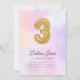 Mágico! O nosso adorável convite para o algodão doce a aquarela apresenta um balão de folha de ouro nº 3 pintado à mão com um equilíbrio de tipografia cursiva e sans serif. Esta design é perfeitamente personalizável e é perfeita para as suas filhas de terceira idade.