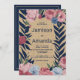 Convites Country rustic ivory navy blue pink floral Wedding