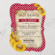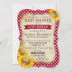 Cheque de gingham vermelho com girassóis do país design de convite para chá de fraldas de piquenique.