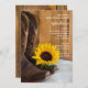 Convide convidados para um celeiro informal, mas elegante, honrando a noiva para estar com o charmoso Chá de panela Sunflower Western Country. Este Chá de casamento personalizado casual e clássico do rancho Invite apresenta uma fina fotografia floral de botas de cowboy de couro marrom, flor de girassol amarelo e madeira de celeiro em cetim branco. Disponível como um convite impresso para envio por correio ou como um download digital para fácil compartilhamento digital online.