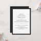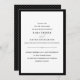 Estes elegantes convites de casamento de na moda apresentam um texto preto chic num fundo branco, bordado em preto clássico.