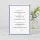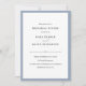 Estes elegantes convites de janto de ensaio de na moda de casamento mostram o texto preto chic num fundo branco, bordado em azul empoeirado.