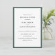 Estes elegantes convites de janto de ensaio de na moda de casamento mostram o texto preto chic num fundo branco, bordado em verde florestal rico.