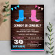 Entusiasmem seus hóspedes com este gênero fofo que revela um convite com botas azuis e rosa bonitinhas com tipografia moderna contra um fundo de madeira. Basta adicionar os detalhes do seu evento neste modelo fácil de usar para torná-lo um convite de tipo único.