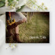 Anuncie seus próximos núpcias do estilo rancho com a casual, mas clássica, Cowgirl e Sunflower Country Western Wedding Salvem o Anúncio de Data. Este charmoso casamento rústico conservador mantém o anúncio da data com uma fotografia cêntrica em estilo de fazenda rural de uma noiva vestindo um vestido de noiva branco e botas de cowboy de couro marrom carregando um buquê de girassóis amarelos inclinados contra uma cerca de arame farpado de madeira com grama verde. Inspo perfeito para cerimônia de casamento e evento de recepção de um partido informal.