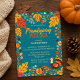 Convide seus entes queridos para um banquete de Amizade com este charmoso convite de sorte. O rico fundo de turquesa é uma canvas para as vibrantes folhas e bagas autóctones que enquadram seus detalhes do evento. Um peru delicioso e uma abóbora festiva adicionam um toque de encanto lúdico, enquanto uma mistura de scripts e fontes limpas garante que seu texto personalizável seja bonito e fácil de ler.