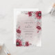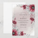 This design features deep maroon blossoms and vibrant red berries arranged with soft silver-grey leaves. A subtle blush pink watercolor background enhances the romantic and sophisticated mood. These botanical elements create a lush, seasonal aesthetic that is perfect for a refined celebration.