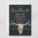 Estes modelos de cartas chatas únicos de casamento, 5 horas por dia, 7 dias por semana, que você pode personalizar apresentam um touro rodeado, um touro de vaca, cinza de árvore, que grunge, design. O estilo de vintage, velho oeste selvagem, inspirou um design de animais legal, de tendências fazendas. Rsvp on-line na parte traseira. Imagem copyright Marg Seregelyi Fotografia.