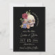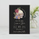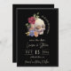 Spooky e elegante 'Salve o convite de Data com 'Até a Morte nos Partir' mensagens e crânio com borboletas, rosas e folhas em um fundo preto. Perfeito para um casamento gótico, Halloween. Alguém disse, "Hallowedding"?!