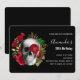 Convites Crânio Gótico com Flores Vermelhas e Folhas de Our