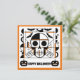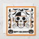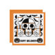 Um design de Halloween ousado e moderno, com crânio geométrico, morcegos, teias de aranha e abóboras em preto clássico, branco e laranja. Perfeito para amantes de época assustadora que querem uma reviravolta na moda na arte tradicional do Halloween.