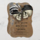 Viciado em elegância gótica, este convite de casamento faz uma declaração ousada e inesquecível para um casal atraído ao misterioso e macabro. No seu centro estão belíssimas ilustrações da noiva e do noivo como figuras esqueléticas, representadas à maneira vitoriana. O crânio da noiva é coroado com um chapéu floral e plumado com pena, com um rosa solteiro, enquanto o noivo veste um chapéu alto de broca. O fundo do convite é uma mármore marrom-ouro com veias negras e mais leves espalhadas por toda parte com um olhar aterrorizado. Este convite define perfeitamente o tom de um casamento romântico e inspirado na vintagem - que celebra o amor eterno com uma reviravolta fantasmagórica e glamourosa. Ideal para o outono e casamentos de Halloween ou qualquer casal com gosto para o gótico, teatral e inesperado.
