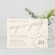 É uma surpresa! convite de aniversário surpresa na moda com caligrafia e tipografia moderna. O número de aniversário é rodeado por um confete de ouro rosa falso contra um fundo creme.