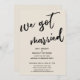 A distinção deste conjunto deve-se à fonte moderna, escrita à mão, utilizada para frases de sotaque. Nesta peça, a letra escrita escrita escrita à mão foi usada para criar um gráfico com as palavras "casámo-nos". Use os campos modelo para adicionar seus detalhes pessoais e tornar este design único e moderno seu próprio. O plano de fundo pode ser alterado para qualquer cor que você preferir. Por favor, responda a quaisquer solicitações especiais ou personalize a assistência. 100 //