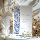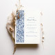 Convide seus hóspedes em estilo com este chá de panela inspirado por William Morris. Apresentando uma intrincada borda floral em azul e branco marinho, este elegante design exude o charme vintage enquanto mantém um eterno, sofisticado apelo. Os delicados detalhes botânicos enquadram o texto lindamente, destacando as informações essenciais de seu evento. Perfeito para uma noiva que ama designs clássicos com um toque de elegância, este convite dá o tom para uma graciosa e memorável celebração de chás de panela. O layout oferece amplo espaço para detalhes personalizados de eventos, garantindo uma maneira uniforme e na moda para anunciar a ocasião.