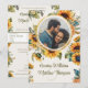 Uma explosão elegante de girassóis contra um fundo creme cria uma exibição impressionante e chamativa para os detalhes do seu casamento. Com caligrafia cursiva delicada e um local para personalizar com sua foto para um toque extra especial. Perfeito para casamentos de Primavera, Verão e Outono!