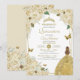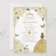 Convites Creme Dourado Borboleta Floral Rosa de Quinceanera
