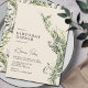 Janto de aniversário formal com um design moderno, fora do centro e um florescimento botânico. Texto preto sobre fundo de cor de marfim neutro. O verso apresenta um padrão de coordenação.