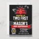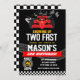 Crescendo Dois Fast Boys Red Race segundo aniversário convite com damas pretos e brancos