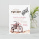 Chute a sua bicicleta e caia na engrenagem! Celebrar o segundo aniversário do teu pequeno piloto com o nosso convite de festas de motocross. Este convite para ingressos super cruzados de bicicleta de corrida muito rápido apresenta um racer de moto de sujeira de aquarela em um padrão quadrado preto e branco em forma de um convite para ingresso. Perfeito para a festa de aniversário de motocicleta, festa de aniversário de moto de terra, duas festas de aniversário de festa de aniversário rápida ou festa de aniversário de transporte.
